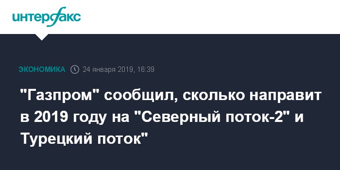 "Газпром" сообщил, сколько направит в 2019 году на "Северный поток-2" и Турецкий поток"