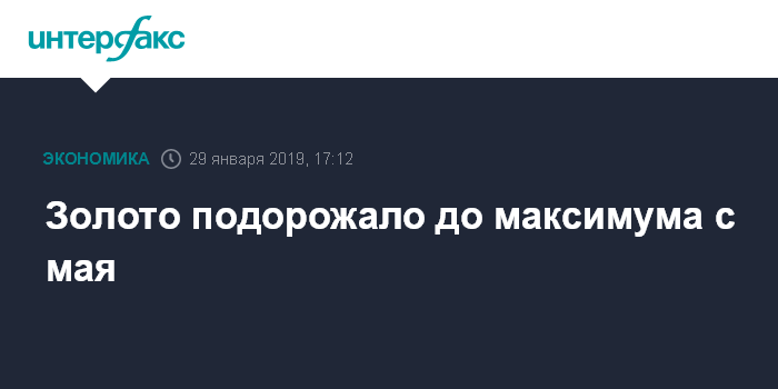 Москва. 29 января. INTERFAX.RU - Цена золота увеличилась в ходе торгов во вторник до максимума с середины мая 2018 года на ожиданиях, что Федеральная резервная система (ФРС) может замедлить темпы повышения базовой процентной ставки.