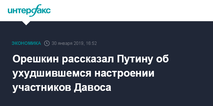 Орешкин рассказал Путину об ухудшившемся настроении участников Давоса