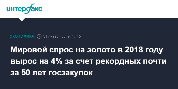 Мировой спрос на золото в 2018 году вырос на 4% за счет рекордных почти за 50 лет госзакупок