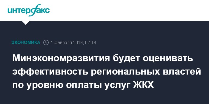 "Новый критерий оценки эффективности региональных властей разработало Минэкономразвития. Деятельность губернатора будет считаться успешной, если МУПы, ГУПы (муниципальные и государственные унитарные предприятия - ИФ) и бюджетные организации в его регионе будут вовремя платить за услуги ЖКХ", - говорится в публикации.