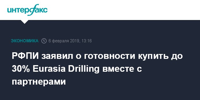 РФПИ заявил о готовности купить до 30% Eurasia Drilling вместе с партнерами
