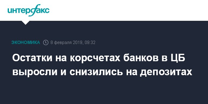 Остатки на корсчетах банков в ЦБ выросли и снизились на депозитах