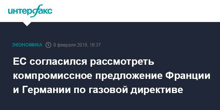 ЕС согласился рассмотреть компромиссное предложение Франции и Германии по газовой директиве