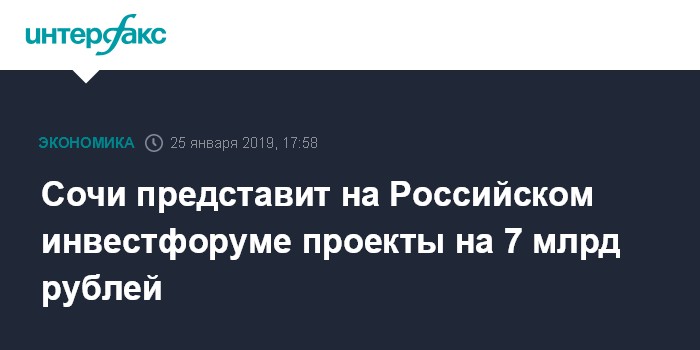 Сочи представит на Российском инвестфоруме проекты на 7 млрд рублей