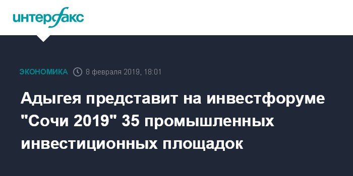 Москва. 8 февраля. INTERFAX.RU - Адыгея для презентации на Российском инвестиционном форуме "Сочи 2019" подготовила пакет инвестиционных предложений, сообщает пресс-служба органов исполнительной власти республики.