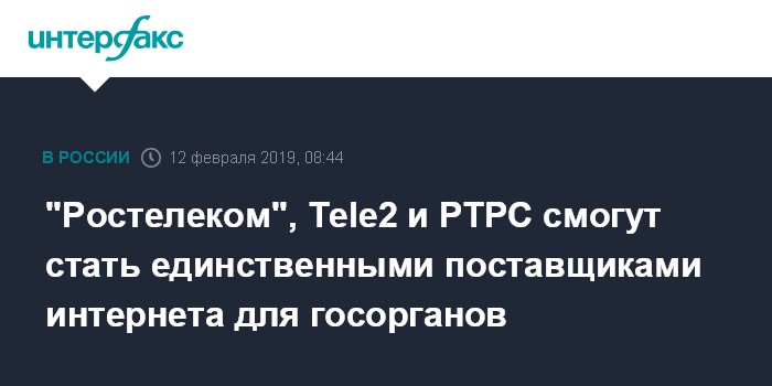 "Ростелеком", Tele2 и РТРС смогут стать единственными поставщиками интернета для госорганов