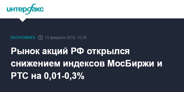 Рынок акций РФ открылся снижением индексов МосБиржи и РТС на 0,01-0,3%