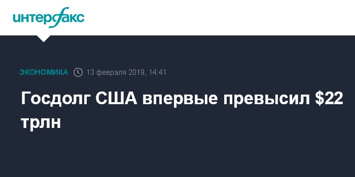 Москва. 13 февраля. INTERFAX.RU - Объем государственного долга США впервые превзошел отметку $22 трлн.
