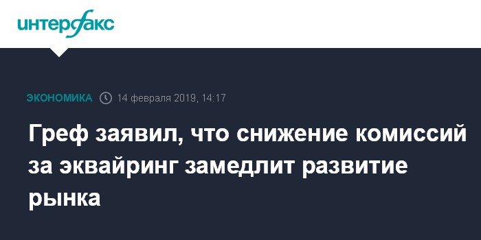Греф заявил, что снижение комиссий за эквайринг замедлит развитие рынка