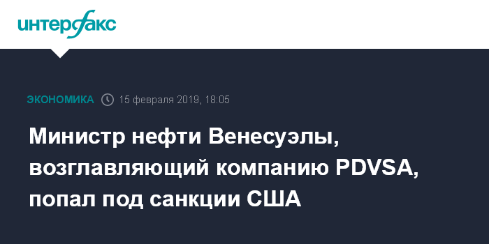 В конце января Вашингтон ввел санкции против PDVSA, запретив перечисление на ее счета средств из США, где реализуется основная часть экспортируемой компанией нефти.