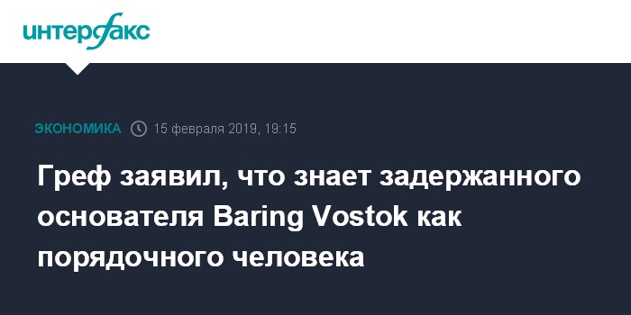 Греф заявил, что знает задержанного основателя Baring Vostok как порядочного человека