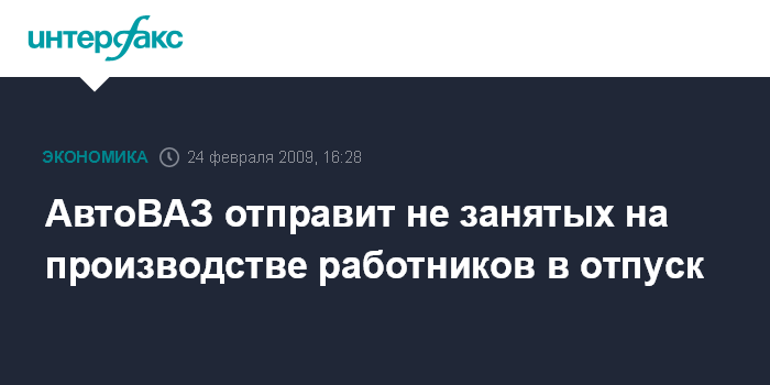Москва. 24 февраля. INTERFAX.RU - Руководство "АвтоВАЗа" отправляет в марте работников, не занятых на производстве автомобилей, в отпуск с выплатой 2/3 заработной платы, говорится в сообщении компании.