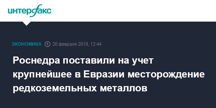 Роснедра поставили на учет крупнейшее в Евразии месторождение редкоземельных металлов