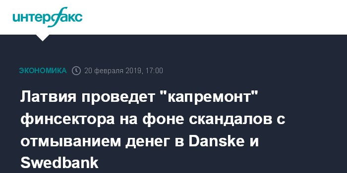 Кроме того, Латвию затронул скандал с отмыванием денег в Danske Bank - крупнейшем банке Дании. На этой неделе Danske объявил о планах прекратить деятельность в России, где у него есть дочерний банк (Данске банк), а также в Латвии, Литве и Эстонии из-за подозрений в отмывании денежных средств через эстонское подразделение.