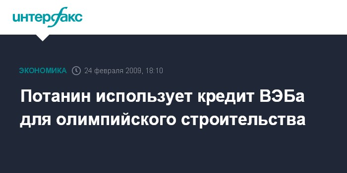 Потанин использует кредит ВЭБа для олимпийского строительства