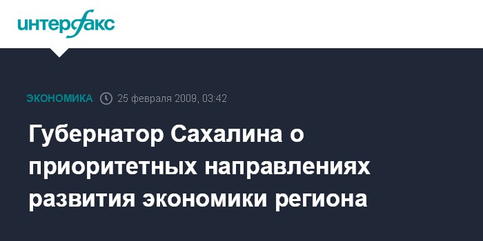 Губернатор Сахалина о приоритетных направлениях развития экономики региона