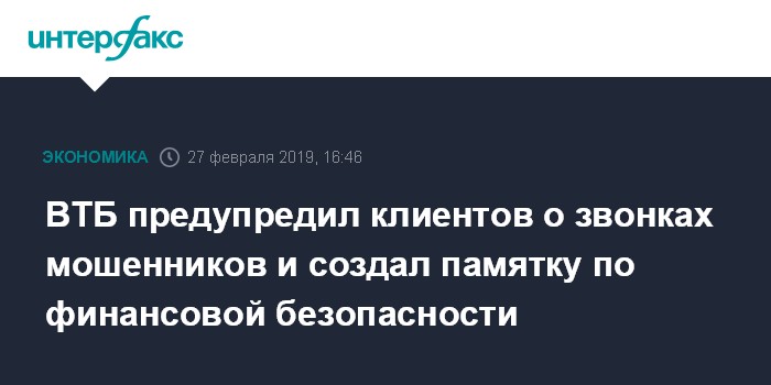 ВТБ предупредил клиентов о звонках мошенников и создал памятку по финансовой безопасности