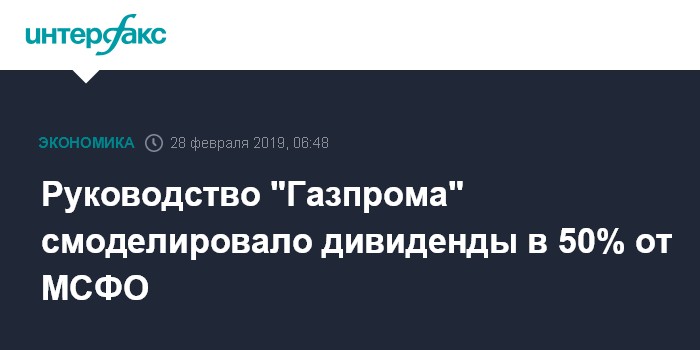 Руководство "Газпрома" смоделировало дивиденды в 50% от МСФО