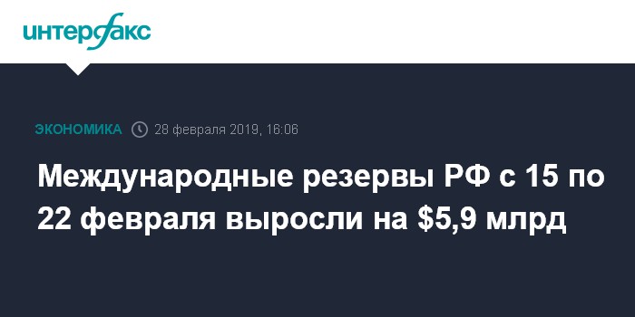 Международные резервы РФ с 15 по 22 февраля выросли на $5,9 млрд