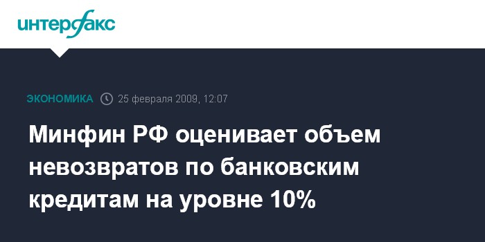 Минфин РФ оценивает объем невозвратов по банковским кредитам на уровне 10%