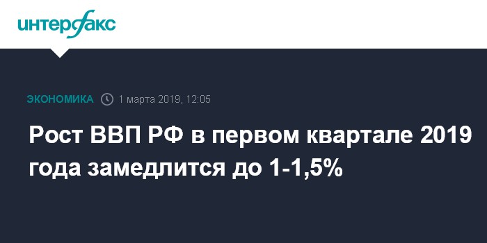 Рост ВВП РФ в первом квартале 2019 года замедлится до 1-1,5%