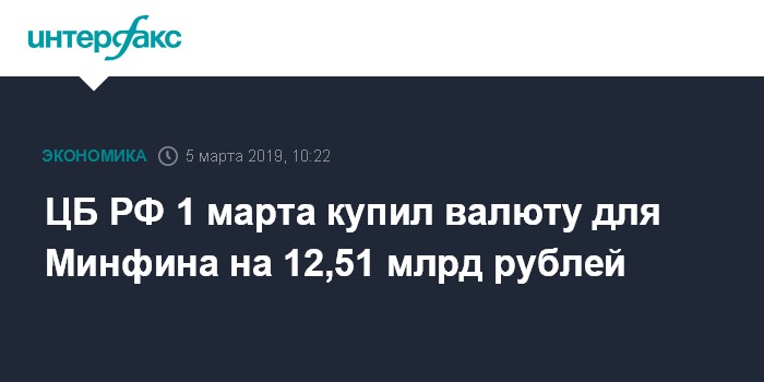 ЦБ РФ 1 марта купил валюту для Минфина на 12,51 млрд рублей