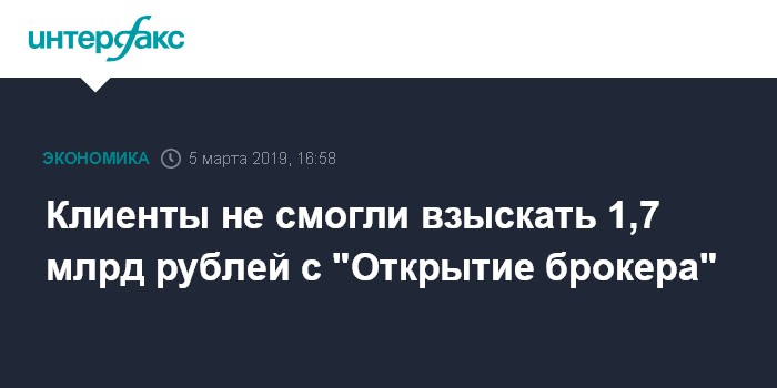 Клиенты не смогли взыскать 1,7 млрд рублей с "Открытие брокера"