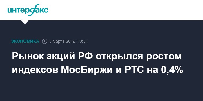 Рынок акций РФ открылся ростом индексов МосБиржи и РТС на 0,4%
