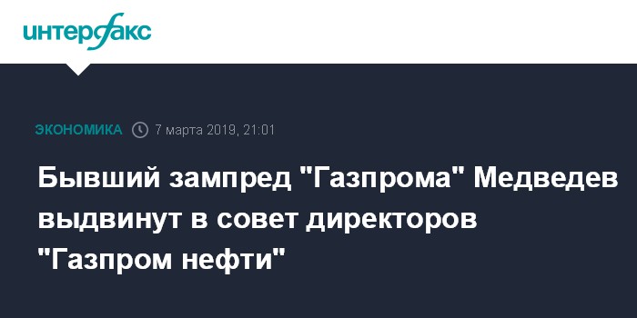 Бывший зампред "Газпрома" Медведев выдвинут в совет директоров "Газпром нефти"
