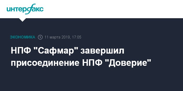 НПФ "Сафмар" завершил присоединение НПФ "Доверие"