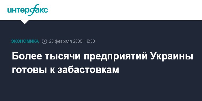 Киев. 25 февраля. INTERFAX.RU - Трудовые коллективы свыше 1 тыс. предприятий Украины готовы к радикальным действиям, говорится в сообщении пресс-службы Национального форума профсоюзов Украины (НФПУ) со ссылкой на председателя НФПУ Мирослава Якибчука.