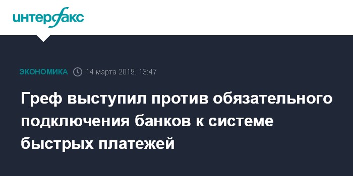 Москва. 14 марта. INTERFAX.RU - Подключение к системе быстрых платежей не должно быть обязательным для банков, считает глава Сбербанка Герман Греф.