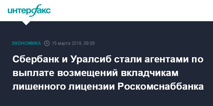 Сбербанк и Уралсиб стали агентами по выплате возмещений вкладчикам лишенного лицензии Роскомснаббанка