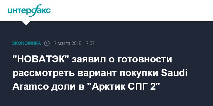 "НОВАТЭК" заявил о готовности рассмотреть вариант покупки Saudi Aramco доли в "Арктик СПГ 2"