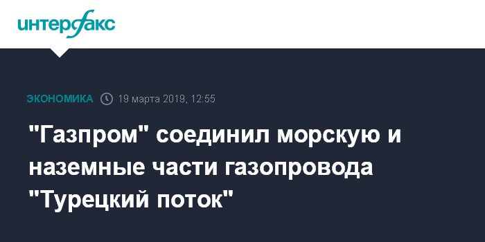 Москва. 19 марта. INTERFAX.RU - Завершающий стык, соединяющий морскую и прибрежную секции "Турецкого потока", был сварен в Турции - он символизирует завершение всего комплекса работ по созданию газопроводной системы в Черном море, сообщил оператор строительства газопровода.