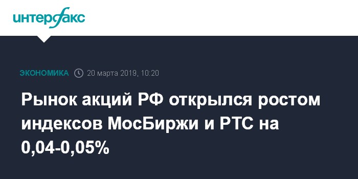 Рынок акций РФ открылся ростом индексов МосБиржи и РТС на 0,04-0,05%