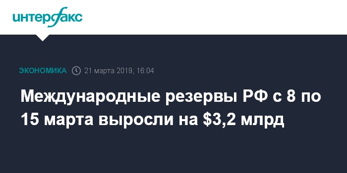 По состоянию на 8 марта международные резервы равнялись $479,3 млрд. Таким образом, за неделю они увеличились на $3,2 млрд.