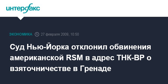 Суд Нью-Йорка отклонил обвинения американской RSM в адрес ТНК-BP о взяточничестве в Гренаде