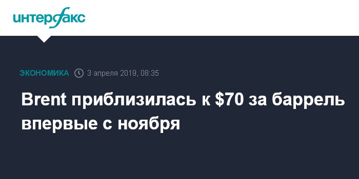 Brent приблизилась к $70 за баррель впервые с ноября