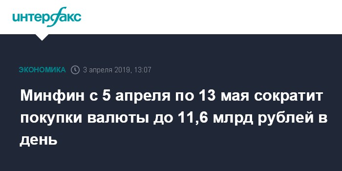 Минфин с 5 апреля по 13 мая сократит покупки валюты до 11,6 млрд рублей в день