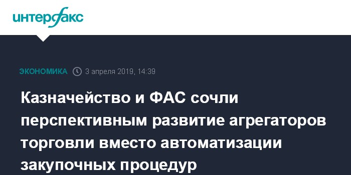 Казначейство и ФАС сочли перспективным развитие агрегаторов торговли вместо автоматизации закупочных процедур