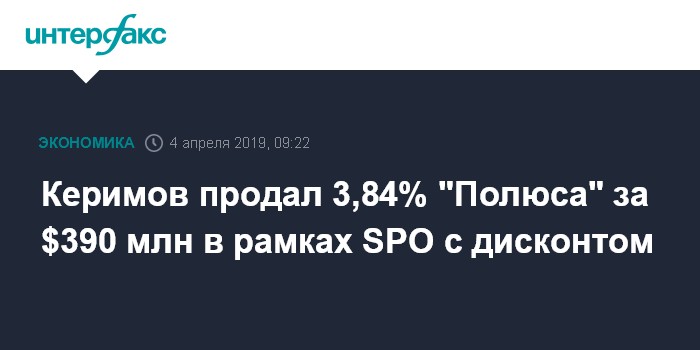Керимов продал 3,84% "Полюса" за $390 млн в рамках SPO с дисконтом