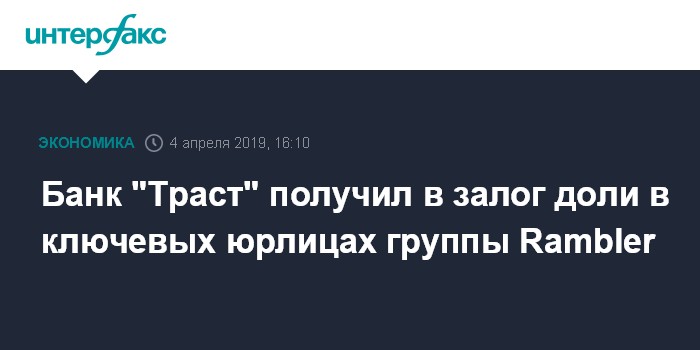 Банк "Траст" получил в залог доли в ключевых юрлицах группы Rambler