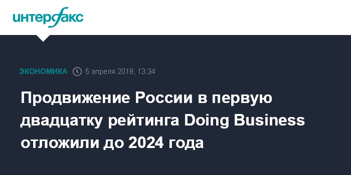 Продвижение России в первую двадцатку рейтинга Doing Business отложили до 2024 года