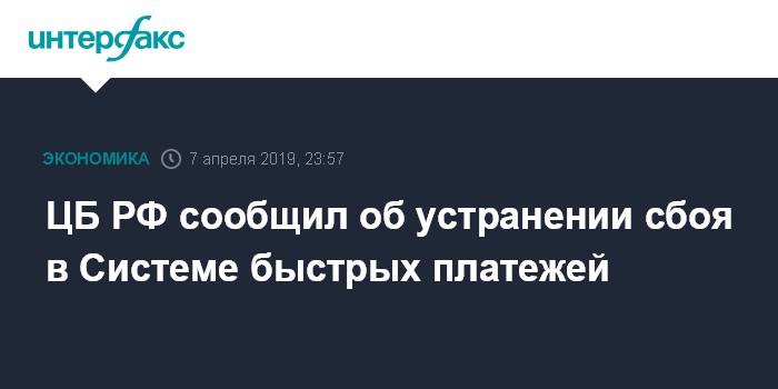 ЦБ РФ сообщил об устранении сбоя в Системе быстрых платежей