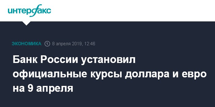 Банк России установил официальные курсы доллара и евро на 9 апреля