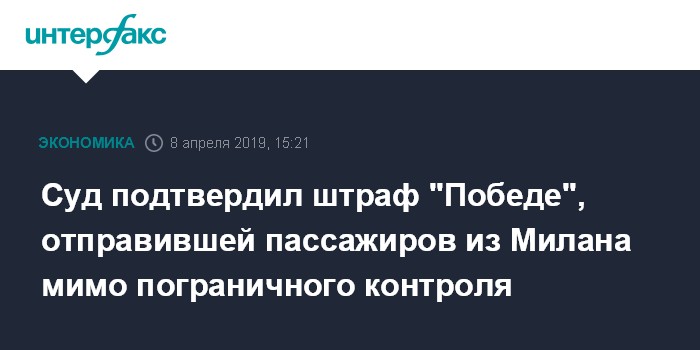 Суд подтвердил штраф "Победе", отправившей пассажиров из Милана мимо пограничного контроля