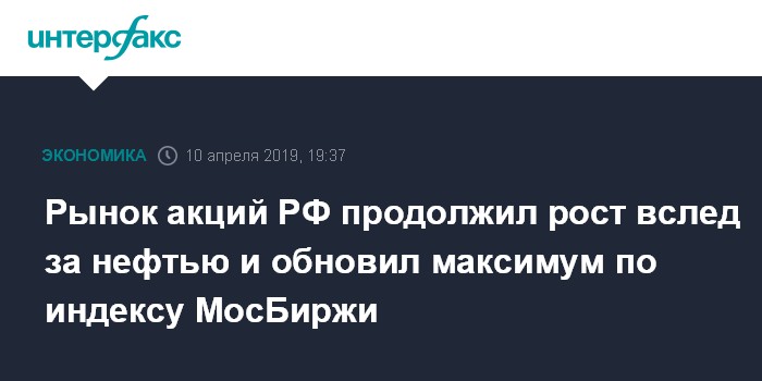 Москва. 10 апреля. INTERFAX.RU - Рынок акций РФ в среду продолжил рост вслед за нефтью и раллирующими бумагами Сбербанка , обновившими максимум за год; индекс МосБиржи обновил историческую вершину, хотя подъем индикатора сдерживался укреплением рубля.