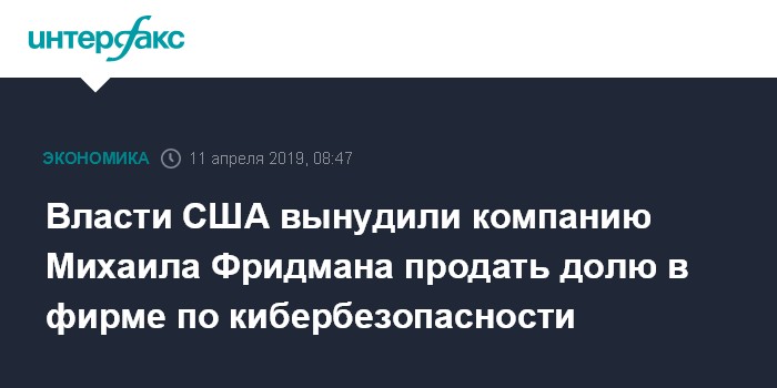 Власти США вынудили компанию Михаила Фридмана продать долю в фирме по кибербезопасности